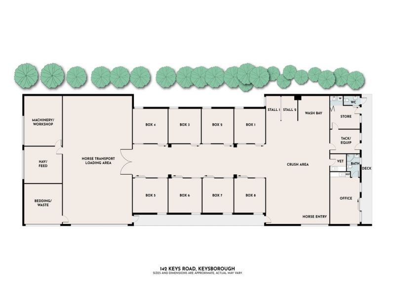 Eight large stable boxes in a prime location; 30 min to Caulfield, 20 min to Cranbourne, 60 min to Flemington, 30 min to Mornington and Pakenham.