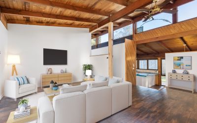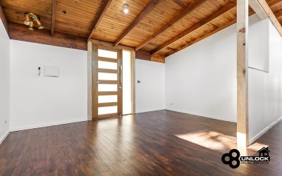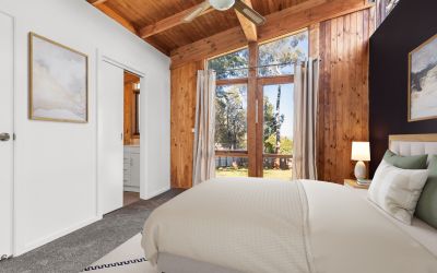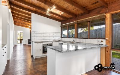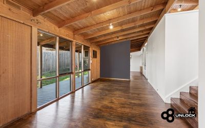Tucked into the peaceful town of Garfield, this beautifully unique timber home combines mid-century character with fresh contemporary touches, offering the perfect balance of style, space and serenity. Behind the private façade lies a light-filled interior framed by soaring ceilings, exposed beams and natural finishes that bring warmth and personality to every corner.