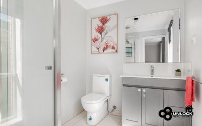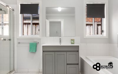 The main bedroom includes a private ensuite and walk-in robe, while the remaining bedrooms offer built-in robes and share a sleek central bathroom.
