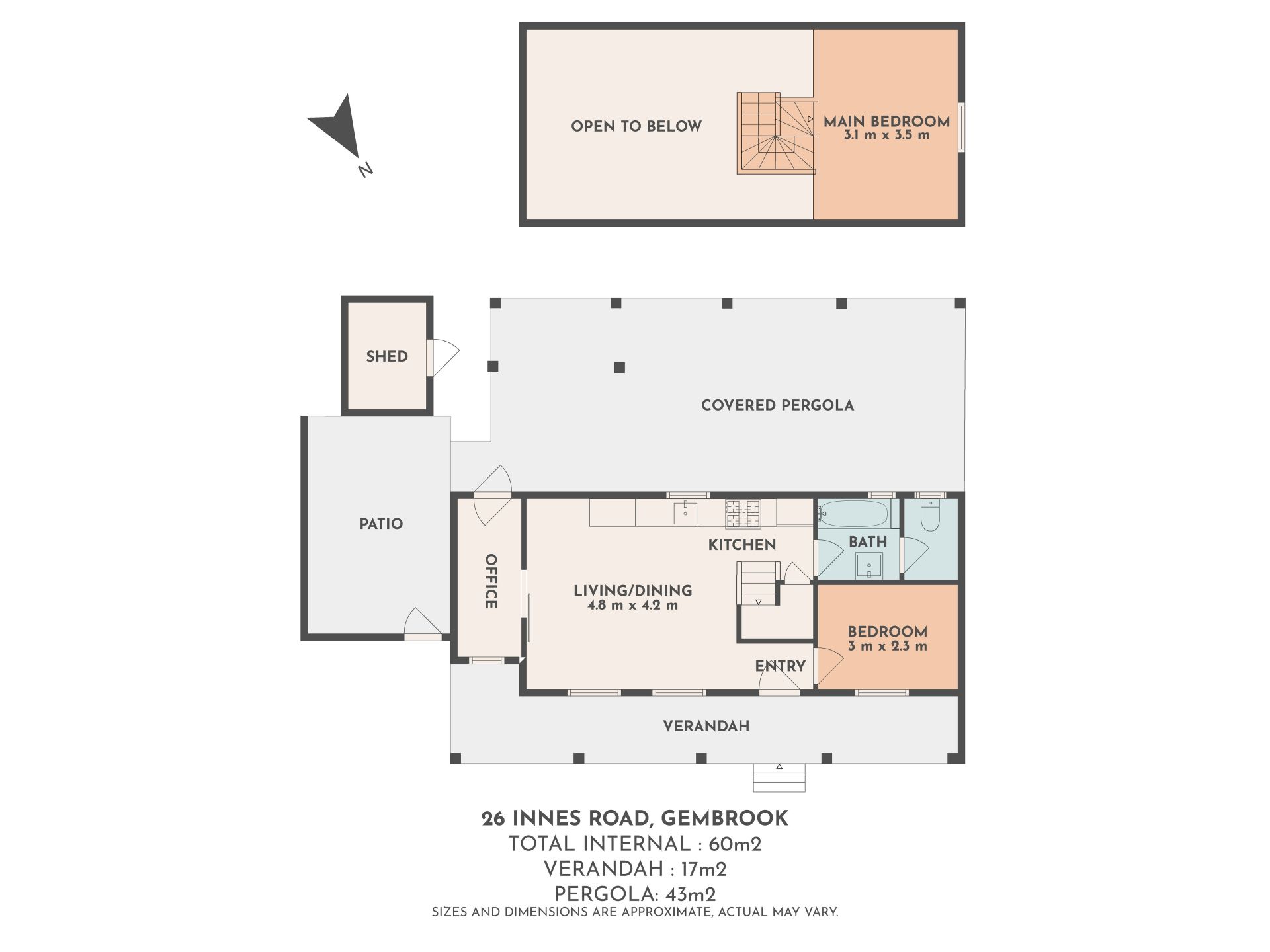 With one bedroom being a loft bedroom up stairs overlooking the open plan kitchen and living area, the other bedroom is conveniently located at the front of the home.